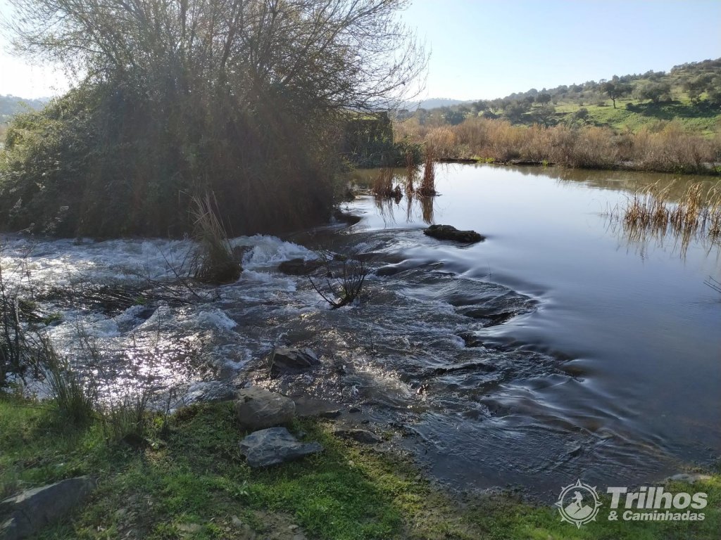 Após passar pelo Monte da Caldeira e pelo Monte da Repoila, começar a descer por novo cenário de olival e montado de azinho que nos levará até às abandonadas Hortas do Lala e do José Garcia, avistando já o Rio Guadiana.